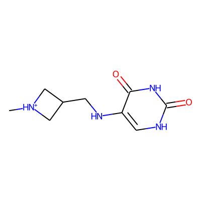 C[NH+]1CC(CNc2c[nH]c(=O)[nH]c2=O)C1| HBA: | 6 | RingCount: | 2 |