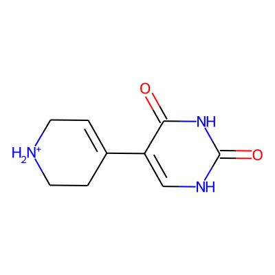 O=c1[nH]cc(C2=CC[NH2+]CC2)c(=O)[nH]1| HBA: | 5 | RingCount: | 2 |