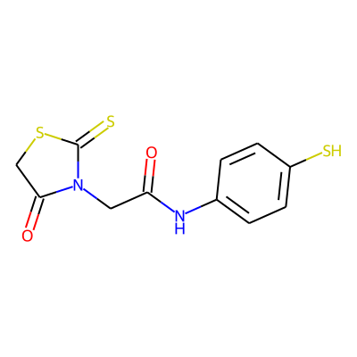 O=C(CN1C(=O)CSC1=S)Nc1ccc(S)cc1| HBA: | 4 | RingCount: | 2 |