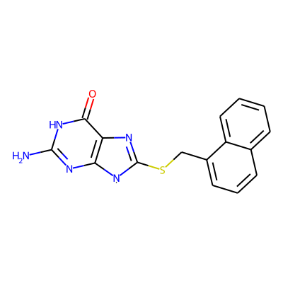 Nc1nc2c(c(=O)[nH]1)N=C(SCc1cccc3ccccc13)[N]2| HBA: | 6 | RingCount: | 4 |