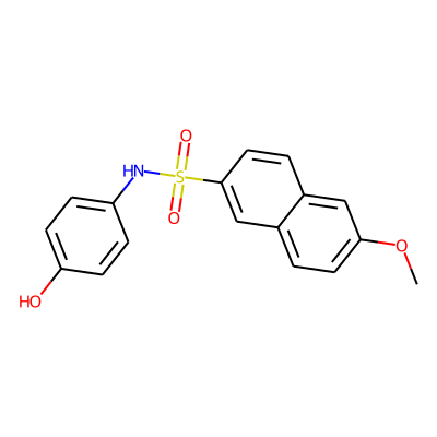 COc1ccc2cc(S(=O)(=O)Nc3ccc(O)cc3)ccc2c1| HBA: | 5 | RingCount: | 3 |