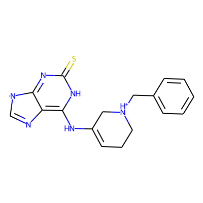 S=c1nc2c(c(NC3=CCC[NH+](Cc4ccccc4)C3)[nH]1)N=C[N]2| HBA: | 6 | RingCount: | 4 |
