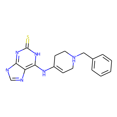S=c1nc2c(c(NC3=CC[NH+](Cc4ccccc4)CC3)[nH]1)N=C[N]2| HBA: | 6 | RingCount: | 4 |