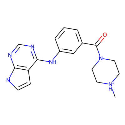 C[NH+]1CCN(C(=O)c2cccc(Nc3ncnc4c3C=C[N]4)c2)CC1Sugarmoiety: