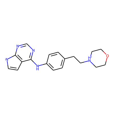C1=Cc2c(ncnc2Nc2ccc(CC[NH+]3CCOCC3)cc2)[N]1| HBA: | 6 | RingCount: | 4 |