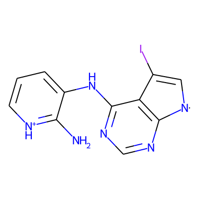 Nc1[nH+]cccc1Nc1ncnc2c1C(I)=C[N]2| HBA: | 6 | RingCount: | 3 |