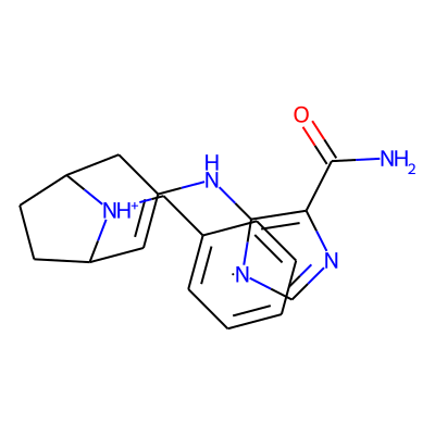 NC(=O)C1=C(NC2=CC3CCC(C2)[NH+]3Cc2ccccc2)[N]C=N1| HBA: | 6 | RingCount: | 4 |