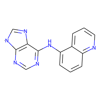 C1=Nc2c(ncnc2Nc2cccc3ncccc23)[N]1| HBA: | 6 | RingCount: | 4 |