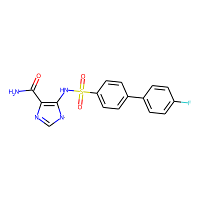 NC(=O)C1=C(NS(=O)(=O)c2ccc(-c3ccc(F)cc3)cc2)[N]C=N1| HBA: | 7 | RingCount: | 3 |