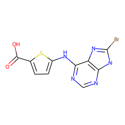 O=C(O)c1ccc(Nc2ncnc3c2N=C(Br)[N]3)s1Sugarmoiety: