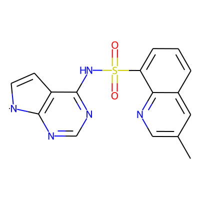 Cc1cnc2c(S(=O)(=O)Nc3ncnc4c3C=C[N]4)cccc2c1| HBA: | 7 | RingCount: | 4 |
