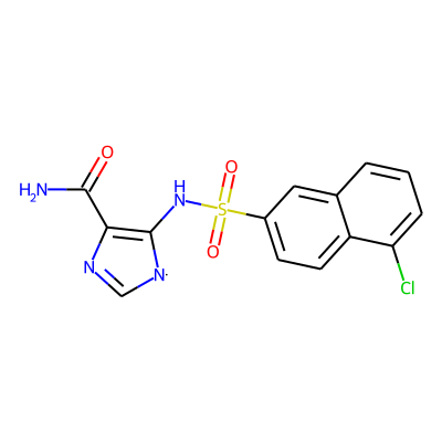 NC(=O)C1=C(NS(=O)(=O)c2ccc3c(Cl)cccc3c2)[N]C=N1| HBA: | 7 | RingCount: | 3 |