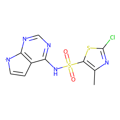 Cc1nc(Cl)sc1S(=O)(=O)Nc1ncnc2c1C=C[N]2Sugarmoiety: