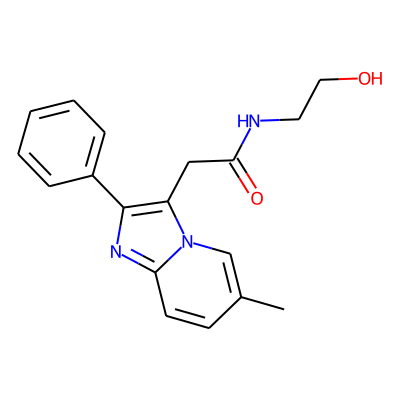 Cc1ccc2nc(-c3ccccc3)c(CC(=O)NCCO)n2c1| HBA: | 5 | RingCount: | 3 |