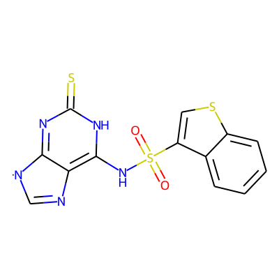 O=S(=O)(Nc1[nH]c(=S)nc2c1N=C[N]2)c1csc2ccccc12| HBA: | 7 | RingCount: | 4 |