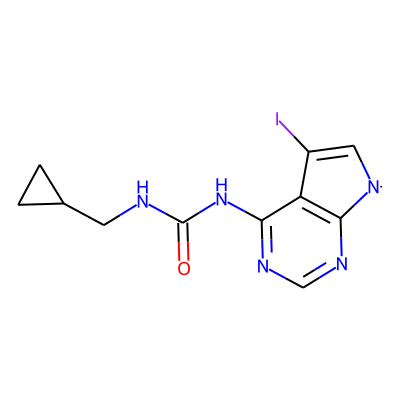 O=C(NCC1CC1)Nc1ncnc2c1C(I)=C[N]2| HBA: | 6 | RingCount: | 3 |