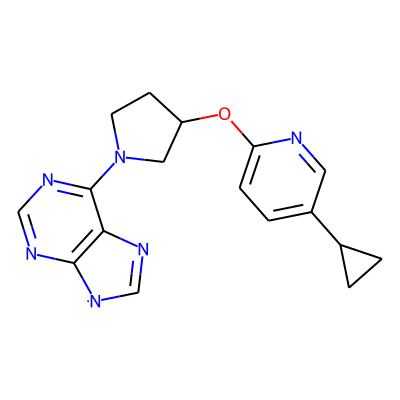 C1=Nc2c(ncnc2N2CCC(Oc3ccc(C4CC4)cn3)C2)[N]1| HBA: | 7 | RingCount: | 5 |