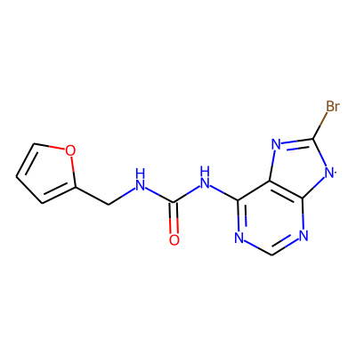 O=C(NCc1ccco1)Nc1ncnc2c1N=C(Br)[N]2| HBA: | 8 | RingCount: | 3 |