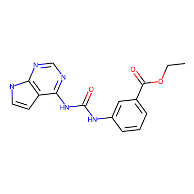 CCOC(=O)c1cccc(NC(=O)Nc2ncnc3c2C=C[N]3)c1| HBA: | 8 | RingCount: | 3 |