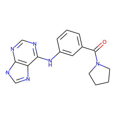 O=C(c1cccc(Nc2ncnc3c2N=C[N]3)c1)N1CCCC1| HBA: | 7 | RingCount: | 4 |