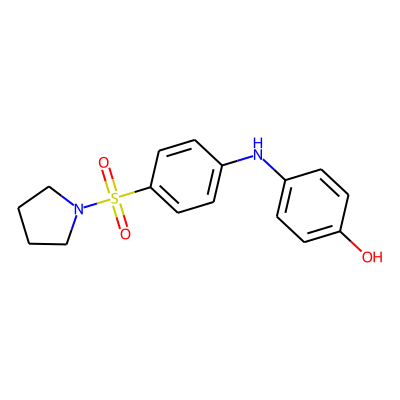 O=S(=O)(c1ccc(Nc2ccc(O)cc2)cc1)N1CCCC1| HBA: | 5 | RingCount: | 3 |