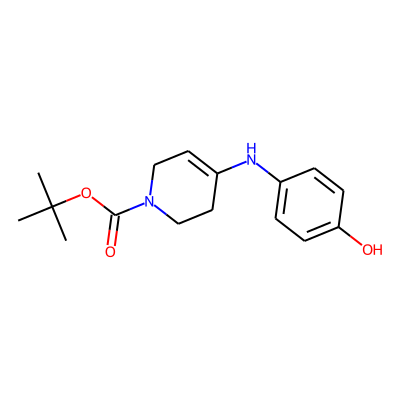 CC(C)(C)OC(=O)N1CC=C(Nc2ccc(O)cc2)CC1| HBA: | 5 | RingCount: | 2 |