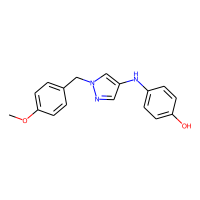 COc1ccc(Cn2cc(Nc3ccc(O)cc3)cn2)cc1| HBA: | 5 | RingCount: | 3 |