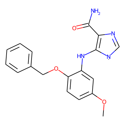 COc1ccc(OCc2ccccc2)c(NC2=C(C(N)=O)N=C[N]2)c1| HBA: | 7 | RingCount: | 3 |