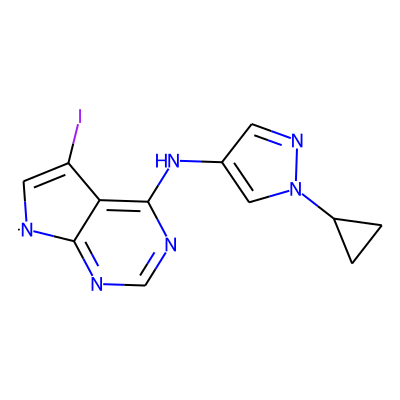 IC1=C[N]c2ncnc(Nc3cnn(C4CC4)c3)c21| HBA: | 6 | RingCount: | 4 |