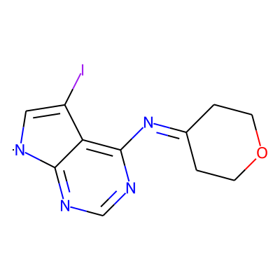 IC1=C[N]c2ncnc(N=C3CCOCC3)c21| HBA: | 5 | RingCount: | 3 |