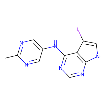 Cc1ncc(Nc2ncnc3c2C(I)=C[N]3)cn1| HBA: | 6 | RingCount: | 3 |