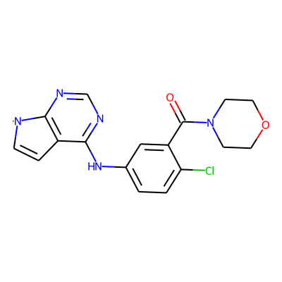 O=C(c1cc(Nc2ncnc3c2C=C[N]3)ccc1Cl)N1CCOCC1| HBA: | 7 | RingCount: | 4 |