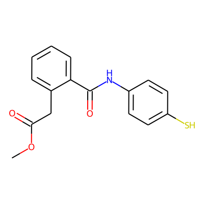 COC(=O)Cc1ccccc1C(=O)Nc1ccc(S)cc1| HBA: | 4 | RingCount: | 2 |