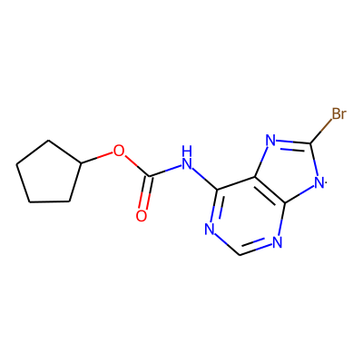 O=C(Nc1ncnc2c1N=C(Br)[N]2)OC1CCCC1| HBA: | 7 | RingCount: | 3 |