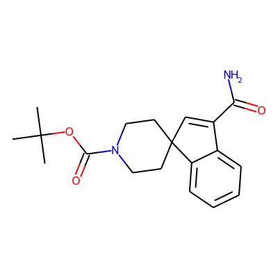 CC(C)(C)OC(=O)N1CCC2(C=C(C(N)=O)c3ccccc32)CC1| HBA: | 5 | RingCount: | 3 |