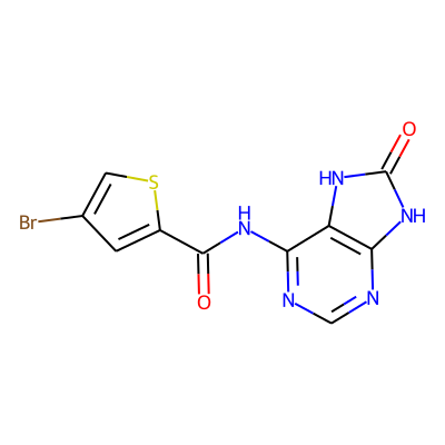 O=C(Nc1ncnc2[nH]c(=O)[nH]c12)c1cc(Br)cs1| HBA: | 7 | RingCount: | 3 |