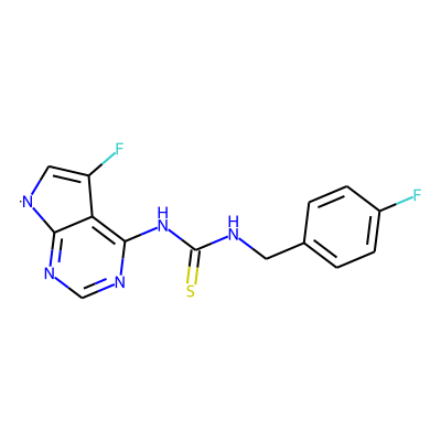 FC1=C[N]c2ncnc(NC(=S)NCc3ccc(F)cc3)c21| HBA: | 5 | RingCount: | 3 |