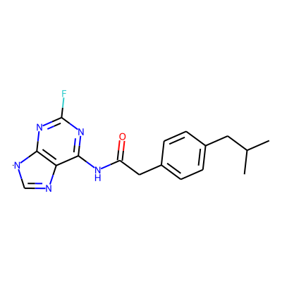 CC(C)Cc1ccc(CC(=O)Nc2nc(F)nc3c2N=C[N]3)cc1| HBA: | 6 | RingCount: | 3 |