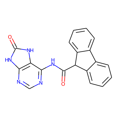 O=C(Nc1ncnc2[nH]c(=O)[nH]c12)C1c2ccccc2-c2ccccc21| HBA: | 7 | RingCount: | 5 |