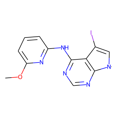 COc1cccc(Nc2ncnc3c2C(I)=C[N]3)n1| HBA: | 6 | RingCount: | 3 |