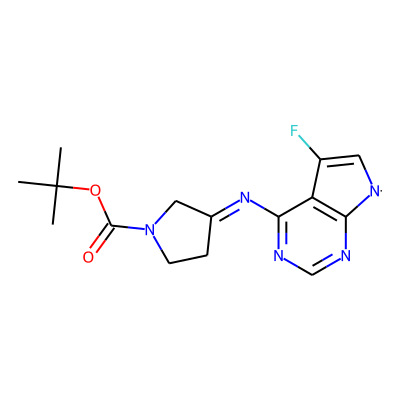 CC(C)(C)OC(=O)N1CCC(=Nc2ncnc3c2C(F)=C[N]3)C1| HBA: | 7 | RingCount: | 3 |