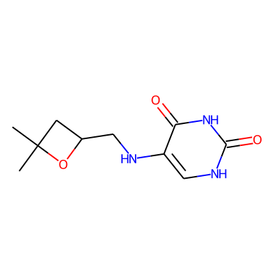 CC1(C)CC(CNc2c[nH]c(=O)[nH]c2=O)O1| HBA: | 6 | RingCount: | 2 |