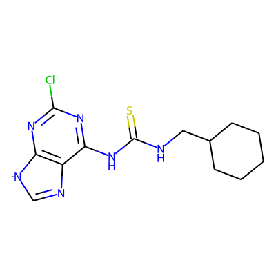 S=C(NCC1CCCCC1)Nc1nc(Cl)nc2c1N=C[N]2| HBA: | 6 | RingCount: | 3 |
