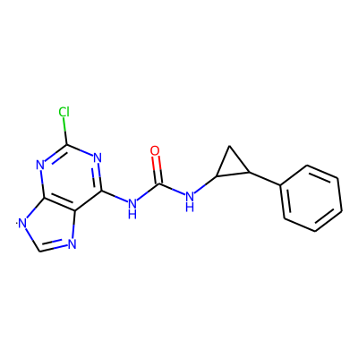 O=C(Nc1nc(Cl)nc2c1N=C[N]2)NC1CC1c1ccccc1| HBA: | 7 | RingCount: | 4 |