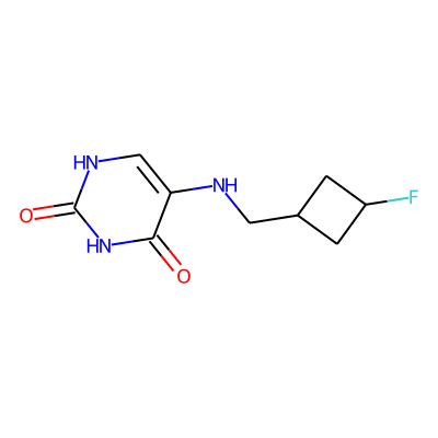 O=c1[nH]cc(NCC2CC(F)C2)c(=O)[nH]1| HBA: | 5 | RingCount: | 2 |