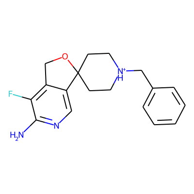 Nc1ncc2c(c1F)COC21CC[NH+](Cc2ccccc2)CC1| HBA: | 4 | RingCount: | 4 |