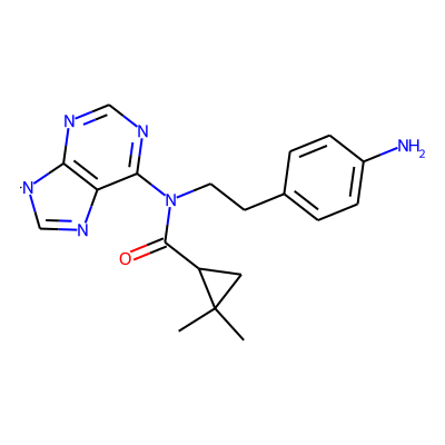 CC1(C)CC1C(=O)N(CCc1ccc(N)cc1)c1ncnc2c1N=C[N]2| HBA: | 7 | RingCount: | 4 |