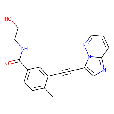 Cc1ccc(C(=O)NCCO)cc1C#Cc1cnc2cccnn12Sugarmoiety: