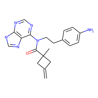 C=C1CC(C)(C(=O)N(CCc2ccc(N)cc2)c2ncnc3c2N=C[N]3)C1| HBA: | 7 | RingCount: | 4 |