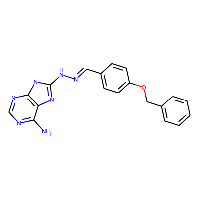 Nc1ncnc2c1N=C(NN=Cc1ccc(OCc3ccccc3)cc1)[N]2| HBA: | 8 | RingCount: | 4 |
